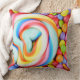 Gestreifter Lutscher und mehrfarbige Smarties Kissen