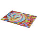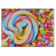 Gestreifter Lutscher und mehrfarbige Smarties Schneidebrett