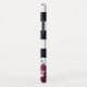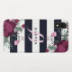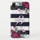 Mit Monogramm iPhone Fall in den Marineblau- und -WEISSstreifen mit hübschen Blumen in blassem - rosa und tiefe Pflaume. Fügen Sie Ihren Namen in den eleganten dunkelblauen Buchstaben auf einem blassen - rosa Monogramm hinzu.