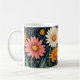 Große, wunderschöne, rosa, gelb-orange und weiße Gänge auf dunklem Hintergrund mit kleinen, goldgelben Blumen verstreut machen diese Tasse zu einem idealen Ort für alle, die Blume und die Natur Lieben.