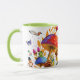 Eine Kombination aus Gartenkunst, Raketenschiffen, Happy Schnecken, einem Yoga-Frosch, magischen Pilzen, fliegenden Zuhause, dem Cloud-Fangen Mädchen zusammen mit ein paar anderen Süssen. Diese wurden alle aus alten Gemälden gemacht und in die Tasse "Get Happy" der Familie Partridge verwandelt.