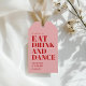 GET READY TO EAT DRINK AND DANCE! Modern soft blush, red bold font, wedding gift tags with your names and date.