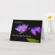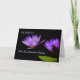 Eine Wohlfühlkarte für Glaucoma Operation mit einem Bild lila Seerosen auf schwarzem Hintergrund. Die Schrift auf der Vorderseite ist dauerhaft, man kann das Innere ändern.