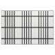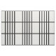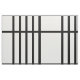 Stilvolles Gewebe kennzeichnet ein mutiges geometrisches Muster mit Gruppen von fünf vertikalen schwarzen Streifen, die durch horizontale schwarze Linien geteilt werden. Das Schwarze auf weißem Entwurf hat einen klassischen Blick und ist eine ursprüngliche Schaffung.