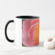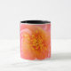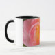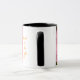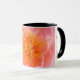 weiße Tasse, schwarzer Griff, schöne goldene rosa Rose mit Benennung in der Goldfarbe: Getränk im Licht
