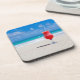 Liebe du Cocktails? Was ist mit Cocktails am perfekten Strand? Hier ist ein schönes Foto einer traumhaften Strandszene mit einem köstlichen roten Cocktail.
