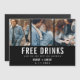 Eine sonnige Hochzeit bewahrt die Dattelmagentickkarten in einem modernen 3-Foto-Schwarz-Design, das lautet "Free Drinks and we will heiratet".