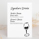 Erhöhen Sie Ihre Bar mit dieser schicken, schwarz-weißen Signature Drinks Menu Karte. Dieses Design ist perfekt für moderne Hochzeiten geeignet und bietet eine elegante Weinglasillustrierung und individuell gestaltbare Getränkeoptionen, die es Ihnen erleichtern, die Karte auf Ihren besonderen Tag abzustimmen. Ob Sie einen eleganten Empfang oder eine entspannte Cocktailstunde planen, dieses minimalistische Design passt sich nahtlos jedem Thema an. Passen Sie die Getränke der Braut und des Bräutigams Ihrem Stil an - fröhlich zu einem unvergesslichen Fest! Ideal für zeitgenössische und zeitlose Hochzeitsästhetik.
