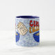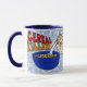 Haben Sie Spaß mit der Morgenmahlzeit mit dieser fantastischen "Getreidemörder" Kaffee-Tasse, die eine blaue runde Schüssel crunchy, geschmackvolle Frühstückskost aus Getreide kennzeichnet, wenn ein verärgerter Karton Milch herein, mit skizzierter Benennung gießt, oben.  Große Weise, sich über Nahrungsmittelliebhabern lustig zu machen, das speziell wie das Essen Getreide und Leckereien scherzt.