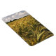 This fine art flexible magnet presents a scenic summer landscape of a field of ripening gold, brown and yellow grain, almost ready to harvest. Die Farm Buildings und Barns Way in der Distanz. The stalks are blowing in the wind to form a lovely abstract pattern.
