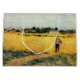 Dieses Design zeigt ein Gemälde des französischen Impressionisten Berthe Morisot (1841-1895). Es zeigt einen Jungen, der auf einem Bauernhof arbeitet, der in einem Getreidefeld stehend ist. Die Getreideernte ist goldfarben. Die Schönheit der Felder kontrastiert mit der malerischen Gemütlichkeit des Dorfes, die im Hintergrund zu sehen ist. Der Junge trägt einen Strohhut und hält einen Sack auf dem Rücken, um seine Arbeit auf dem Bauernhof zu unterstützen. Es gibt einen schmutzigen Weg, der von Gras umgeben ist und vom Feld des goldenen Getreides abführt. Die Szene befindet sich im französischen Gebiet von Gennevilliers, das heute Teil der nordwestlichen Vororte von Paris ist. Das Originalwerk wurde 1875 von Berthe Morisot gemalt.