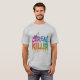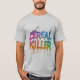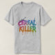 Dieser unterhaltsame und spielerische T - Shirt enthält den Satz "Cereal Killer" in lebhaften, mehrfarbigen Buchstaben, umgeben von spielerischen Müslischachfiguren und zerstreuten Müslistücken. Es eignet sich perfekt für Getreideliebhaber und für diejenigen, die einen etwas sonderbaren Spaß schätzen.