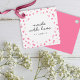 Stilvolle Anhänger mit den Worten "Made with Liebe" und rosa verstreuten Herzen Konfetti vor einem weißen Hintergrund. Diese Marke ist hervorragend für Handwerker und Hersteller von Handwerksartikeln, wie Künstler, Stricker, Friktierer. Es kann bei der Gabe von handgefertigten Waren oder als Produktetiketten verwendet werden. Personalisieren Sie es, indem Sie den Platzhalter-Text durch Ihre eigenen Informationen ersetzen. Für weitere Optionen, wie zum Beispiel den Schriftart zu ändern und ihn zu vergrößern oder zu verändern, klicken Sie auf den Button "Anpassen". *Bitte beachten Sie, dass das Zazzle-Wasserzeichen, das in der Zoomvorschau angezeigt wird, NICHT auf dem gedruckten Endprodukt erscheint. © Rosewood and Citrus