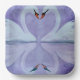 Ein wunderschönes Schwanenpaar schwimmt in lila Schattierungen auf dem See. Das Paar Schwäne symbolisiert eine lebenslange Beziehung. Die Grafik sieht gut aus auf Papier Teller und verschiedene Hochzeitszubehör.