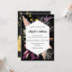 Diese atemberaubende Hochzeitseinladung verbindet elegant kontrastreiche Elemente und besticht durch ein lebendiges, mehrfarbiges Blumendesign vor einem schwarzen Hintergrund. In einem zeitlosen geometrischen Rahmen eingebettet, fügt der stilvolle Schriftart der Karte eine Touch moderner Eleganz hinzu und verspricht ein unvergessliches Fest von Liebe und Freude.
