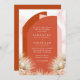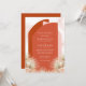 Diese Einladung enthält Grafiken von getrockneten Palmen, rot gefärbte Blume. Das Design bietet Rost- und Blütenakzente.