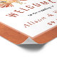 Tropisch getrocknete Palmen Blätter, Pampas Gras und Protea-Blume Terracotta Botanische Begrüßung Hochzeitsposter. Dieses schöne Hochzeitsdesign besticht durch einen Bogenrahmen auf Terrakotta-farbenem Hintergrund. Im Rahmen befindet sich Ihr Text, ein Strauß mit Blätter aus getrockneten Palmen, Protea-Blume und Pampas-Gras.