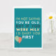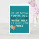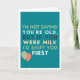 "I'm not saying you're old, but if you were milk I'd sniff you first." This sarcastic & funny birthday card features a blue background, colorful bold typography and two birthday balloons. This fun and cute card is ideal for those people in your life who are getting older and you love to remind them. Perfect for friends, siblings, parents or pretty much anyone who needs to hear it. Customize the inside message to make it uniquely you!