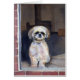 Das ist ein Aquarellbild meines kleinen Hundes an der Glasschiebetür, gewartet für mich, wieder hinein zu kommen.