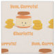 Gewebe mit einem lächelnden Glas Karottensäuglingsnahrung. Diese Cartoonillustration umfaßt Stapel der geschnittenen Karotten. Der Entwurf umfaßt einen kundengerechten Namen und die Wörter "Yum, Karotten!"