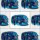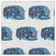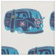 Blauer Hippiepackwagen, der auf einem Gewebe zeichnet.