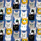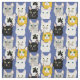 Katzengesicht. Sechs separate Gesichter. Eine graue Katze, eine schwarze, eine orangefarbene, zwei weiße Katze und eine weiße mit schwarzem Maulkorb. Die Augenfarbe reicht von blau bis grün. Hintergrund ist ein abgestuftes Medium blau.
