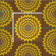Medallion aus goldenen Kreisen in einem Zickzackmuster hergestellt. Das Sonnenburstmotiv des Single besteht aus 4 konzentrischen Kreisen, die dann in einem gestaffelten "Halbtrop"-Muster über Stoff hinweg repliziert werden. Anpassen durch Ändern der Hintergrundfarbe (Standardeinstellung dunkelbraun).