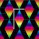 Das grafische Bild der Diamantform in Regenbogenstreifen wird über das Produkt mehrmals wiederholt. Die farbigen Diamanten sind auf schwarzem Hintergrund angeordnet. Diamanten sind die Farben des Regenbogens von oben blau bis lila, rot, orange, gelb und grün.