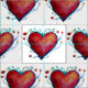 Rote Aquarellherzen auf Stoff.