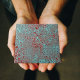 Diese Keramik-Kachel ist eine schöne Mischung aus Kunst und Architektur und strahlt eine antike Eleganz aus, zeitlos und zeitlos zugleich. Es zeichnet sich durch ein kompliziertes Muster aus, das Elemente von floralen und geometrischen Mustern kombiniert. Die Primärfarben sind aquamarin und rot, wodurch ein lebhafter Kontrast entsteht, der visuell auffällig ist. Der aquamarine Hintergrund dient als Leinwand für die roten Ziermotive, die sorgfältig aufeinander abgestimmt sind, um ein harmonisches Muster zu bilden. Das Design wird noch durch graue, über die gesamte Oberfläche verteilte Splitter ergänzt, die der Ästhetik insgesamt Textur und Tiefe verleihen. Der Stil der Fliesen erinnert an traditionelle oder antike Zierkacheln, die oft in alten Palästen oder Moscheen zu finden sind. Trotz seiner Vintagen Anziehungskraft kann die Fliese dank ihres vielseitigen Designs und Farbschemas verschiedene Innenstile von klassisch bis modern ergänzen.