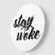 Möchten Sie, dass andere Leute über die Dinge in ihren Nachbarschaften und der Welt im Allgemeinen bleibe werden? Diese moderne, elegante Schreibuhr für Typografie mit den Worten "bleibe geweckt" sendet genau diese Botschaft aus. Passen Sie dieses Design an, indem Sie Ihren eigenen Text hinzufügen.