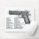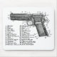 Ein Vintages Bild eines Gewehrdiagramms für eine halbautomatische Pistole mit 45 Kalibern.