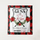 Gewehre oder Rose Geschlecht zeigen Kinderdusche zurück fallen. Rot Schwarz und Weiß. Rote Rosen auf dem Abzeichen-förmigen Rahmen mit coolen Bohrungen um den äußeren Rahmen der Rose. Ideal für Paare aus dem Militär- oder Strafverfolgungsbereich. ©2022 Miss SassyParty Designs