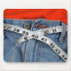 Tape-Maßnahme als Gürtel in blauen Jeans.
