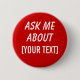 Fragen Sie mich ungefähr - fertigen Sie mit Ihrem eigenen fördernden Knopf oder Abzeichen des Textes besonders an. Addieren Sie Ihr Produkt oder halten Sie Namen instand. Ändern Sie Schriftart- oder Hintergrundfarbe, wenn Sie mögen. Beantworten Sie Fragen oder erhöhen Sie Verkäufe mit einem Gesprächsstarterknopf. Gut für Messe oder anderes Ereignis.