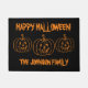 Gewohnheit geschnitzte Kürbiskopf Halloween-Türmatte. Spaßfußmatten mit personalisiertem Familiennamen/Familiennamen für diesen Feiertag. Spaß-Partyversorgungen, -zusätze und -dekorationen mit Ihrem eigenen lustigen Zitat oder Sprichwort. Machen Sie Ihre eigene Zollerklärungswolldecke für Trick- oder Leckereinacht. Addieren Sie Ihre eigene Empfangsmeldung, Familiennamen, Monogramm, Familiennamen oder Zitat. Niedliche Wohngestaltunggeschenkidee für das Haus des Büros. Personalizable Kürbislaternefußmatten-Zeichenschablone. Stellen Sie Ihre eigene jackolantern Druckeintrittsmatte/-wolldecke für vordere Tür/Eingang oder Halle/Partyort, Portal, kundengerechte Wohngestaltung des Gartens etc./Dekorationen für Ihr Haus oder Geschäftslokal, das Geschäft, Speicher im Freien etc., die in kleinem und großem großem verfügbar sind her. Kürbisgesicht Carvings mit beängstigendem typograpghy Schriftart in der schwarzen und orange Farbe. Glückliches Halloween!