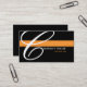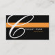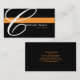 Ein schwarzer Hintergrund mit einem orange Streifen. Ersetzen Sie das große "C" durch den ersten Buchstaben des Ihres Firmennamens für einen kundenspezifischen Blick. Alle die Ihre Kontaktinformationen ist auf der Rückseite der Karte. Schriftart und Schriftartgröße und -farbe können geändert werden.