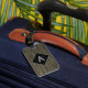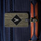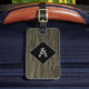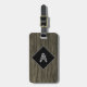 Dieses GepäckanhängerAusrüstungsbeschreibungen ein rustikales Muster mit einem braunen Holz mögen Auftritt. Er kennzeichnet auch einen kundenspezifischen Anfangsbuchstaben in einem funky Schriftart auf der Front und personalisiertes Kontaktinfo auf der Rückseite.