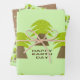 Dieses phantastische Geschenkpacker-Set zeigt ein grafisches Bild von drei Bäumen, die Palmen mit großen grünen Blattfronten und einem robusten braunen Baumstamm ähneln. Es gibt eine Nachricht in braunem Text, die wie Boden unter den Bäumen aussieht. Die Nachricht sagt Happy Earth Day.