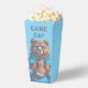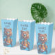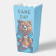Benutzerdefinierte Fußball Gunst-Boxen mit einem sportlichen Bären, der einen Fußball hält. Ideal für diejenigen, die ein Party für ein bevorstehendes Fußballspiel veranstalten. Passen Sie den Text auf der Vorder- und Rückseite der Felder an. Modernes blaues Design. Verwenden Sie die Vorlage, um Ihre eigenen, eigenen Fußballfavorisierboxen zu erstellen.