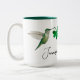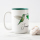 Diese individuell gestaltbare Tasse ist ein hervorragendes Geschenk für Kolibris, die von zwei handbemalten Kolibris mit Ruby-Kehlkopf Blätter von Klee tragen. Der Stil und die Größe des Schriftartes können leicht verändert werden.