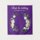 Maßgeschneiderte Hochzeitskulisse für Empfang, Hochzeitsempfang mit Kalligrafie, Tapiskulisse für Hochzeitsfeiern, Blumengrün für Hochzeitsfeier, rustikale Hochzeitsdekoration für Hochzeitsfotos, Brautparty-Banner für Verlobungsfeiern, Hintergrund für Hochzeitstische, personalisierte Namen für die Eherberung, lila Foto