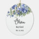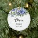 Dieses Keramik-Ornament wird mit einem schönen Blumendruck und einem individuelle Name und Datum ihrer Taufe gezeigt. Die Rückseite hat eine Schrift. Passen Sie dieses Element an, und ändern Sie den Beispieltext in Ihren Text. Lizenziertes Bild
