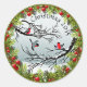 Gewohnte Vögel in schneebedeckten Nadeln Red Berri Runder Aufkleber