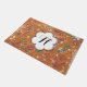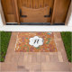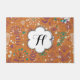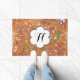 Ein wunderschönes Design mit floralen Weinfliesen, aquamarin und weiß auf einem orangefarbenen, rostfarbenen Hintergrund voller hübscher Wildblumen und Lüstern aus aquamarin, weiß und wein. Diese lustige, farbenfrohe, skurrile Türmatte verfügt über ein weißes Blume-Banner, das Sie einfach mit Ihrem Monogramm-Initial personalisieren können!