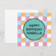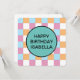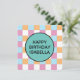 Cooles, blaues, orangefarbenes und rosa Schachbrettmuster und eine Textvorlage. Klicken Sie zum Bearbeiten auf Personalisieren und ändern Sie die Wörter.