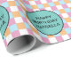 Cooles, blaues, orangefarbenes und rosa Schachbrettmuster und eine Textvorlage. Klicken Sie zum Bearbeiten auf Personalisieren und ändern Sie die Wörter.