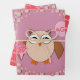 Dieses phantastische Geschenkpackungs-Set verfügt über eine niedliche braune Eule mit großen, schläfrigen Augen. Die Eule hält einen hübschen, blassrosa Ballon und einen Strauß mit hellrosa Blume, umhüllt in einen blassrosa Kegel. Der Ballon hat anpassbaren Text im Inneren, sodass Sie es personalisieren können, um jedes Alter von 1 bis 100 Jahren zu feiern.