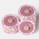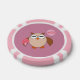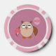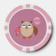 Dieses phantastische Set von Poker-Chips verfügt über eine niedliche braune Eule mit großen, schläfrigen Augen. Die Eule hält einen hübschen, blassrosa Ballon und einen Strauß mit hellrosa Blume, umhüllt in einen blassrosa Kegel. Der Ballon hat anpassbaren Text im Inneren, sodass Sie es personalisieren können, um jedes Alter von 1 bis 100 Jahren zu feiern.