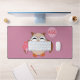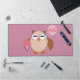 Diese phantastische Schreibtischmatte verfügt über eine niedliche, braune Eule mit großen, schläfrigen Augen. Die Eule hält einen hübschen, blassrosa Ballon und einen Strauß mit hellrosa Blume, umhüllt in einen blassrosa Kegel. Der Ballon hat anpassbaren Text im Inneren, sodass Sie es personalisieren können, um jedes Alter von 1 bis 100 Jahren zu feiern.